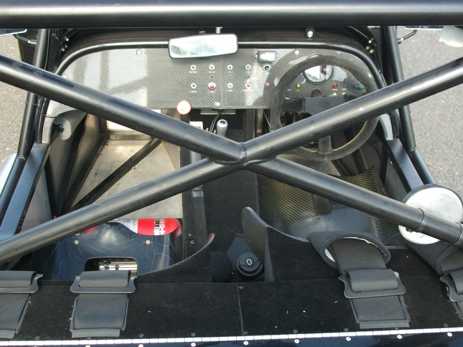 Full carbon race seat with 6 point Willans black race harnesses with twist release buckles